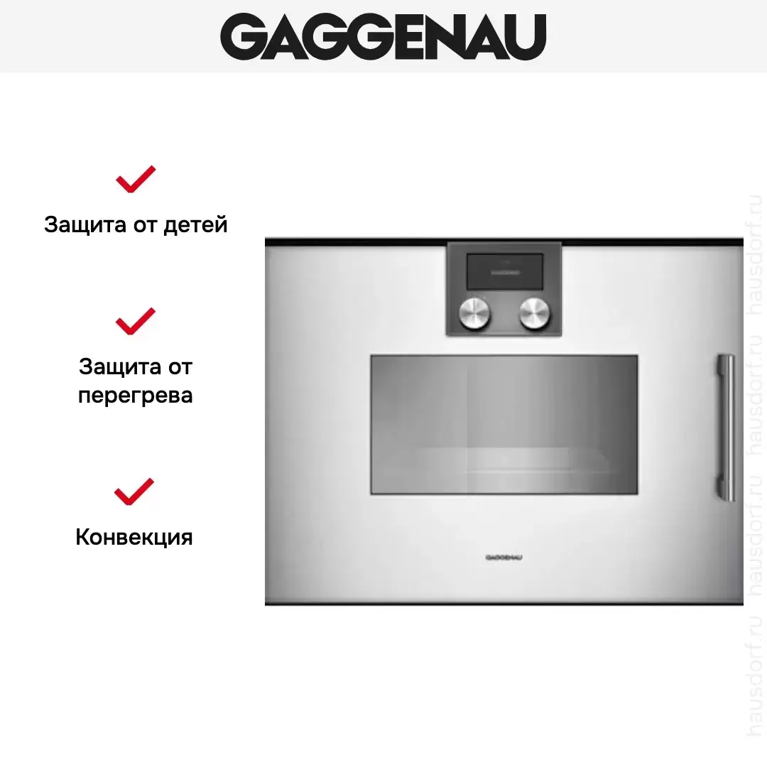 Готовьте свои лучшие блюда и пробуйте новые рецепты с духовым шкафом Gaggenau BSP 251-110! Стандартные размеры и большой объем внутренней камеры — выбор тех, кто много готовит для семьи или частых праздничных встреч с друзьями. Желательно заранее продумать расположение такой модели в кухонном гарнитуре.