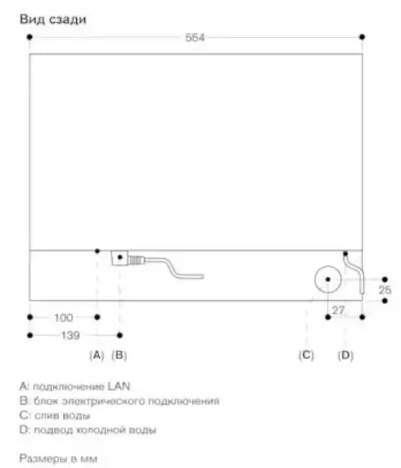 - Фасад прибора выступает на 21 мм от уровня мебели