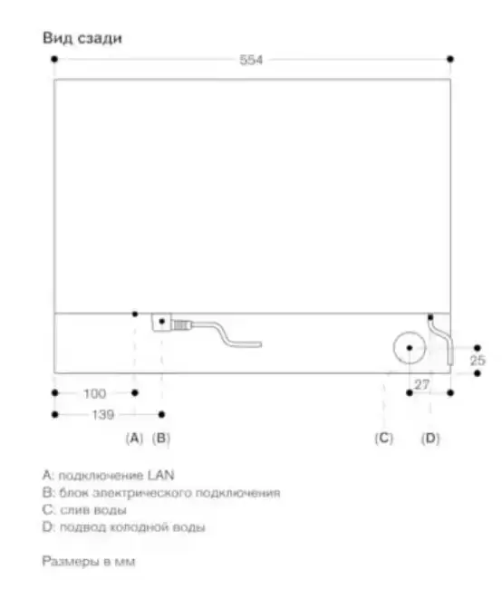 - Фасад прибора выступает на 21 мм от уровня мебели