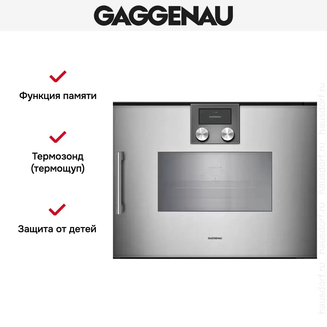 Встраиваемый духовой шкаф имеет дополнительные функции пароварки, поэтому вам доступны такие режимы приготовления, как Sous-Vide, горячий воздух с четырьмя уровнями влажности, гриль с несколькими ступенями влажности. Автоматическая очистка от загрязнений происходит с помощью картриджей, идущих в комплекте. Для удаления накипи необходимо приобрести комплект специальных таблеток. Фронтальная часть прибора располагается на уровне с установленной рядом мебелью, сделан из стекла и имеет термозащиту с дополнительным охлаждением, что повышает удобство использования и безопасность.