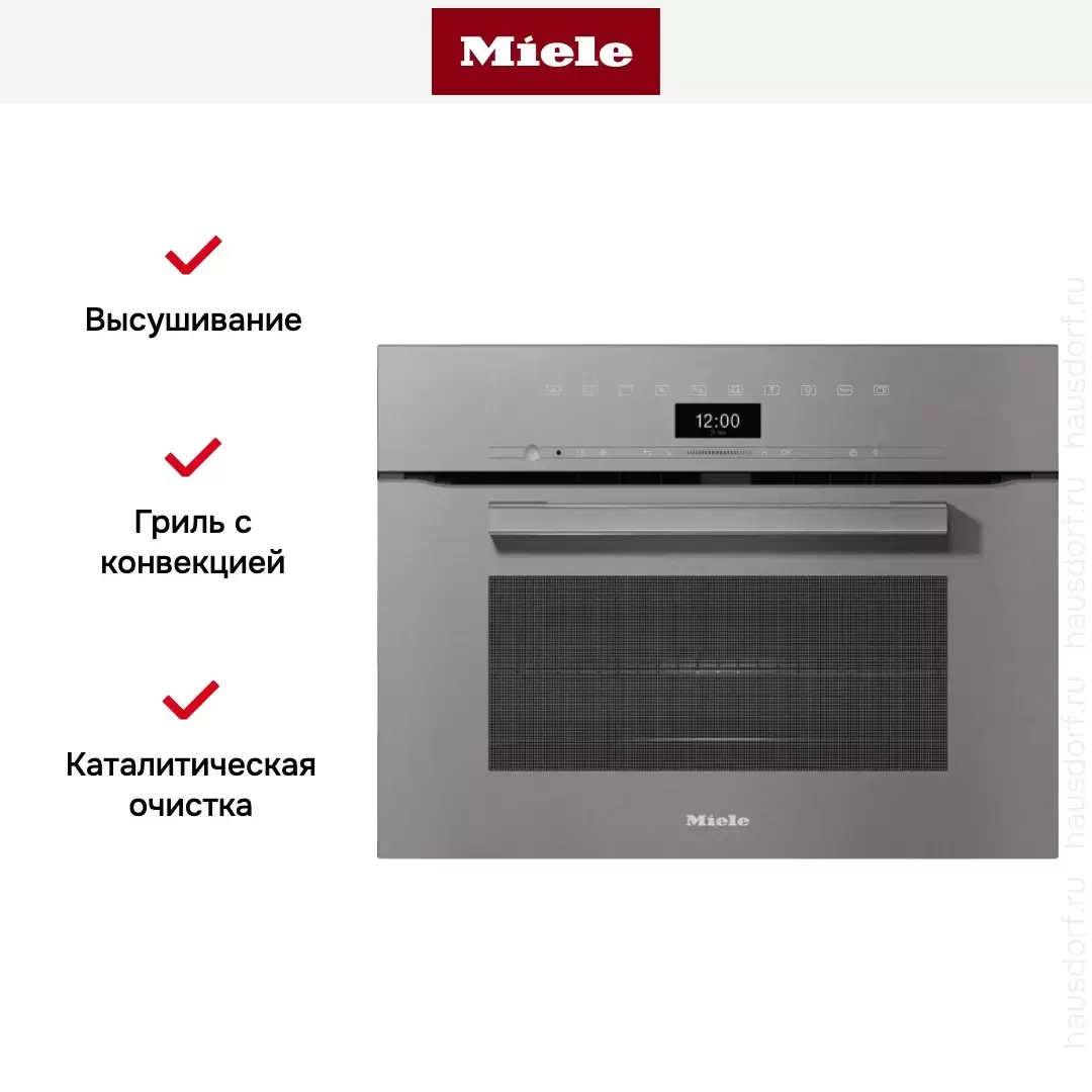 Духовой шкаф графитового цвета с функцией СВЧ, конвекцией и грилем. Вы можете использовать их отдельно или сочетать, включать автоматические режимы или программировать по времени. Камера покрыта эмалью PerfectClean, задняя стенка — каталитической, поэтому ее легко чистить.