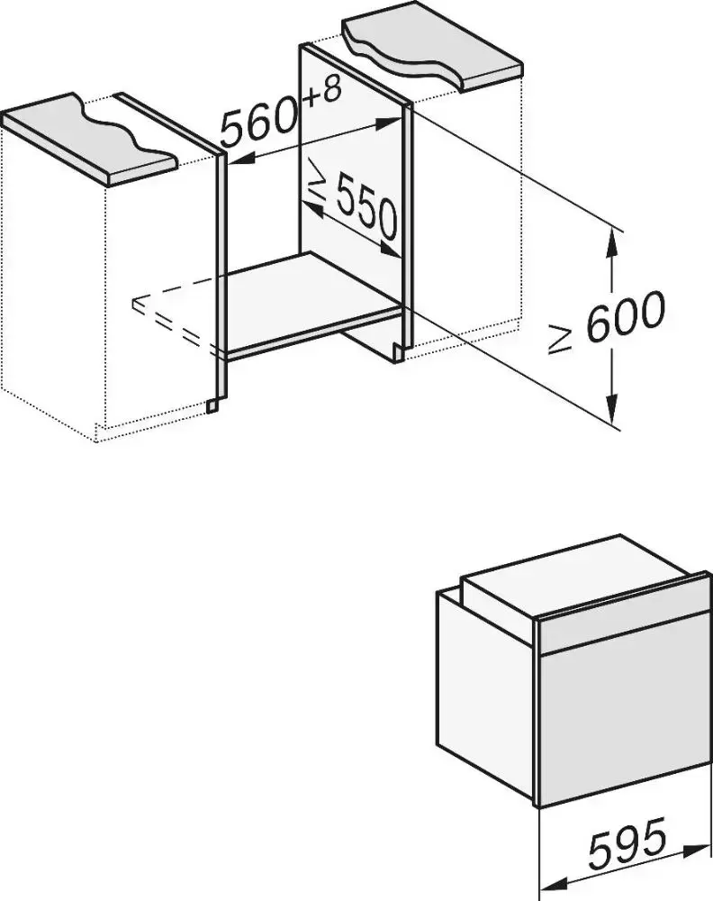 - Размеры ниши для встраивания, ВхШхГ (см)