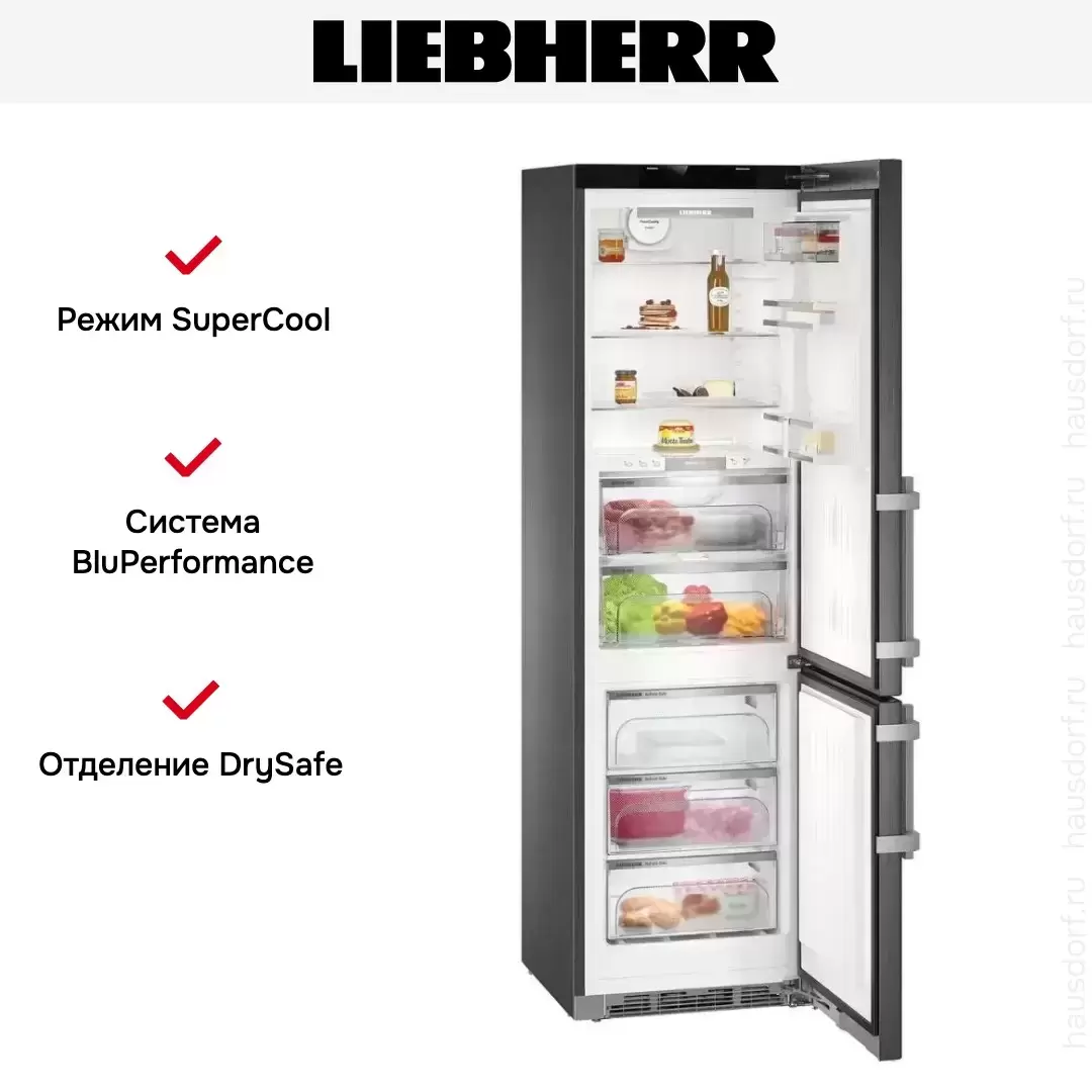 Liebherr CBNbs 4878 — отдельностоящий двухкамерный холодильник. Имеет зону свежести BioFresh для длительного хранения фруктов, овощей, мяса и рыбы. Система доводчиков SoftSystem амортизирует движение двери, обеспечивая мягкое закрывание. При отключении электроэнергии прибор способен сохранять холод до 24 ч, замораживает 16 кг продуктов в сутки.