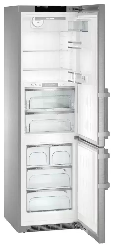 Liebherr CBNes 4898 — отдельностоящий двухкамерный холодильник. Оснащен зоной свежести BioFreshPlus с двумя ящиками на телескопических направляющих, где созданы оптимальные условия для долгого хранения овощей, фруктов, рыбы и мяса. Имеется ледогенератор IceMaker, способный производить до 1.2 кг льда в сутки. На покрытии SmartSteel не останется отпечатков пальцев и царапин.