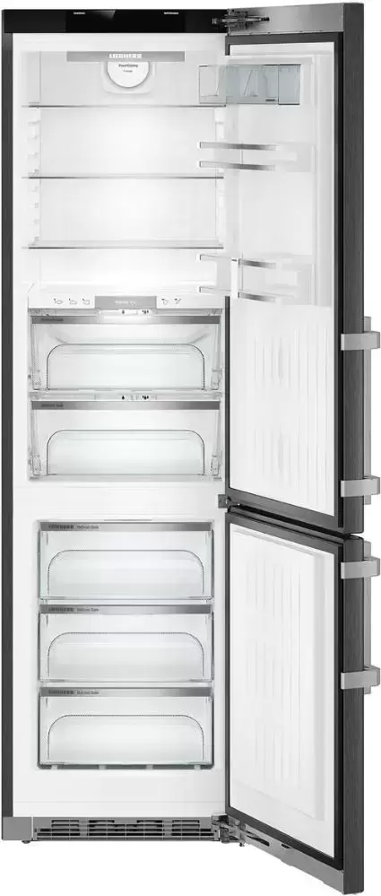Холодильник Liebherr CBNPbs 4858 Premium BioFresh выполнен в лаконичном дизайне в цвете «черный металл». Цветной дисплей подчеркивает современный стиль модели, а также отображает фактическую температуру и информацию о настройках пользователя. Конструкция прибора предусматривает специальные функции: «Ночной режим», «Вечеринка», «Отпуск», «Покупки», что гарантирует комфорт эксплуатации.