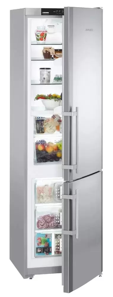 Холодильник Liebherr CBPesf 4033 выполнен из качественных материалов и представлен в цвете нержавеющая сталь. Устройство дополнено эргономичными ручками со встроенными толкателями для комфортного открытия. Классическая комбинация представляет собой две камеры, расположенные друг на другом. Нижнее положение занимает минусовое отделение с тремя прозрачными ящиками. Верхнее отделение дополнено зоной свежести, которая расширяет функциональные возможности и позволяет как можно дольше сохранять свежесть продуктов. Стеклянные полочки можно регулировать по высоте, что также является преимуществом, так как позволяет создать собственное зонирование. Холодильник Либхер CBPesf 4033 располагает внутренним освещением. Светодиоды не нагреваются во время работы, отличаются длительным сроком службы.