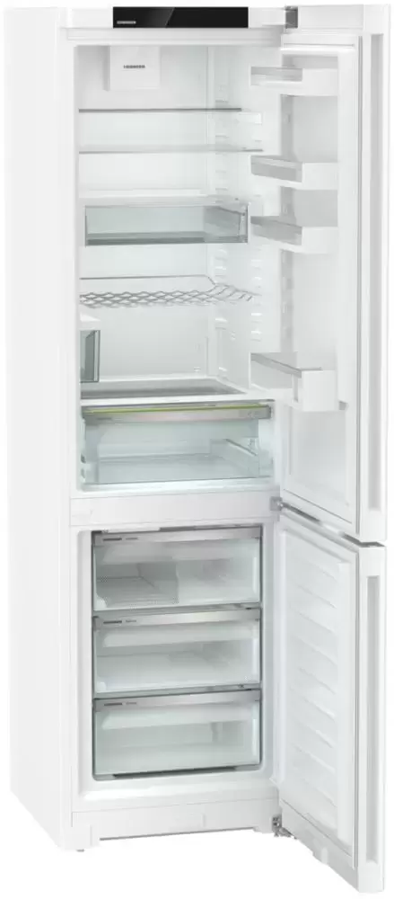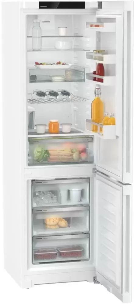 Холодильник Liebherr CNd 5743 займет достойное место на современной кухне: в нем несколько вариантов полок и отсеков для хранения, большую часть которых можно передвигать по высоте, чтобы освободить пространство для высоких упаковок и кастрюль. В верхнем отделении расположен контейнер EasyFresh, предназначенный для хранения овощей, фруктов и зелени. За счет подвижной пластины на крышке можно регулировать естественную влагу, которую выделяют эти продукты.