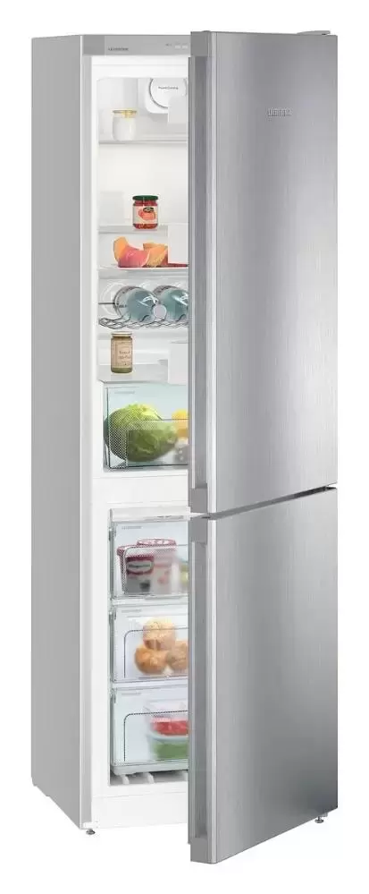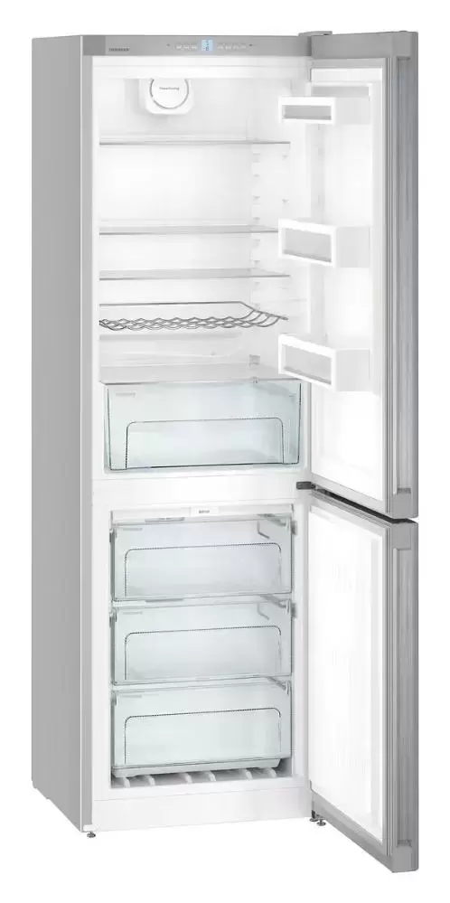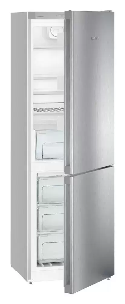 Отдельно стоящая двухкамерная модель высотой 186 см и шириной 60 см имеет общий объем 333 литра. Стальной корпус выполнен в лаконичном дизайне HardLine, который будет уместен в кухне любого стиля. Фронт изготовлен из нержавеющей стали, по всей протяженности его идет встроенная вертикальная ручка. Электронная панель управления располагается за дверцей, она оснащена кнопками и ЖК-дисплеем MagicEye с цифровой индикацией температуры. Панель можно заблокировать от случайного изменения настроек. В холодильной камере предусмотрена автоматическая система размораживания без намерзания на стенки льда и инея. Четыре полки изготовлены из закаленного стекла и способны выдержать значительный вес, три из них можно перемещать по высоте для загрузки посуды большого размера. Два пластиковых контейнера служат для хранения овощей и фруктов. Наполнение морозильной камеры составляют контейнеры FrostSafe с прозрачной передней частью. Они плотно закрываются, так что продукты остаются замороженными, даже если дверцу часто открывают. При загрузке большого количества свежих продуктов поможет функция SuperFrost, позволяющая заблаговременно снизить температуру.