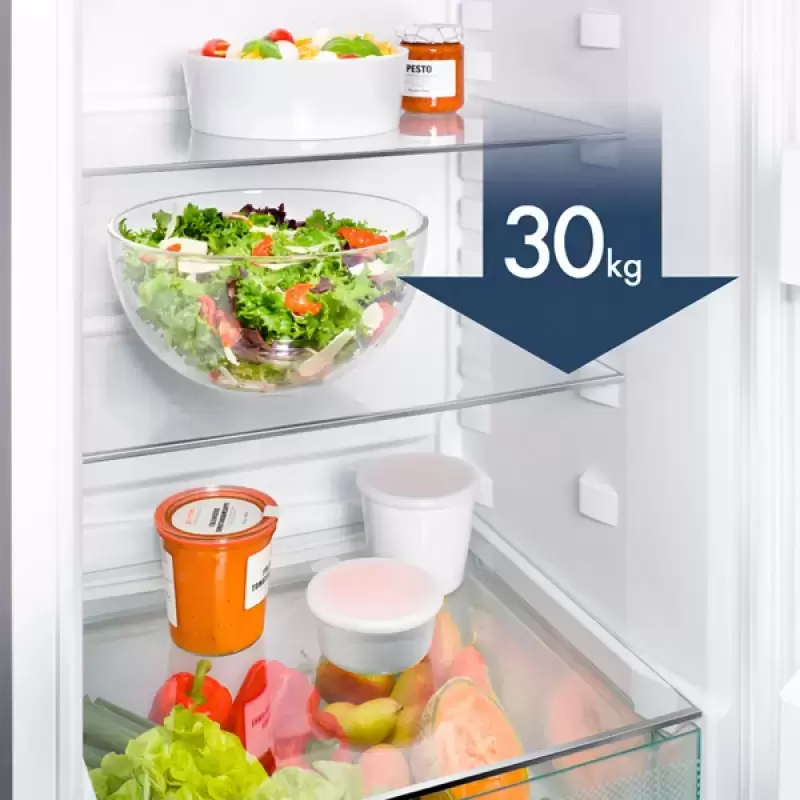 Отдельно стоящий прибор общей емкостью 333 литра может быть установлен вплотную к стене или в готовую нишу. Выбору оптимального места установки способствуют регулируемые по высоте ножки и перенавешиваемая дверца. Электронная кнопочная панель управления размещается за дверцей в верхней части корпуса. Дисплей MagicEye позволяет установить температуру в отделениях с точностью до градуса. О возникших неисправностях, а также о неплотно закрытых дверцах холодильной и морозильной камер предупреждает акустический сигнал. Панель управления может блокироваться от детей. Холодильное и морозильное отделения размораживаются автоматически. Система циркуляционного охлаждения PowerCooling равномерно охлаждает продукты и позволяет размещать их в любой части камеры. Два независимых холодильных контура DuoCooling предусматривают раздельную регулировку температуры в камерах и исключают воздухообмен и смешивание запахов. Производительность замораживания может составить до 10 кг продуктов в сутки. Режим суперзамораживания SuperFrost позволяет быстро снизить температуру до −32º С, благодаря чему в продуктах полностью сохраняются все полезные вещества.