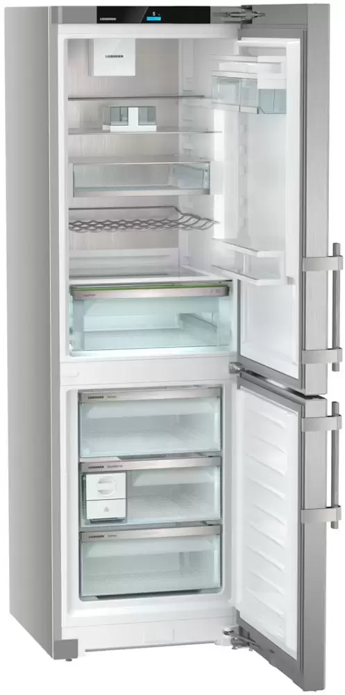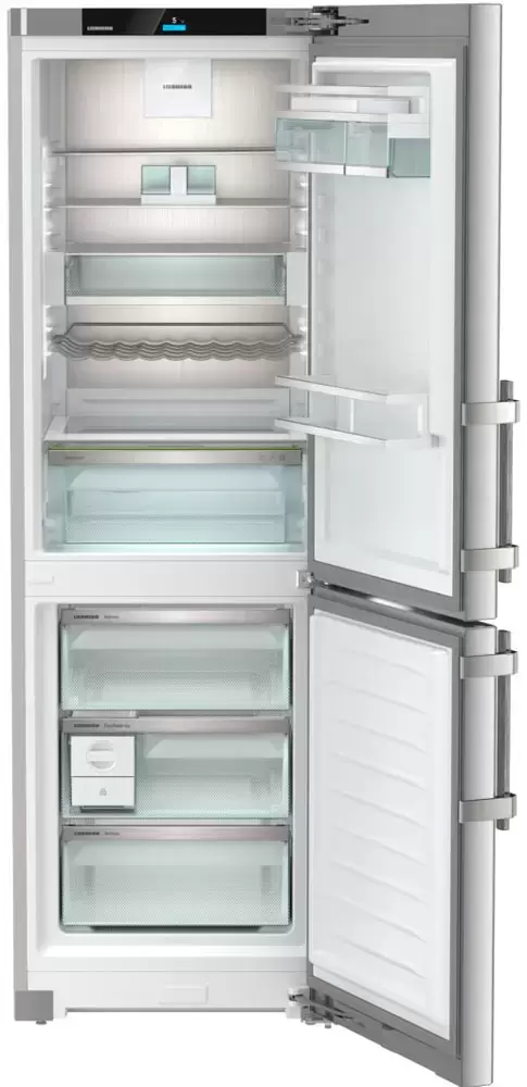 Холодильник Liebherr CNsdd 5253 Prime NoFrost — отдельностоящая модель от известного производителя бытовой техники. Прибор представлен в цвете нержавеющая сталь — универсальное решение для большинства интерьеров. Поверхность легко очищается от следов от рук, разводов и других загрязнений. Удобный и эргономичные ручки с толкателями обеспечивают легкое открытие. Внутри представлены полки с возможность регулировки по высоте, а также прозрачные боксы с легким выдвижением. Дополняет оснащение металлическая полка, на которую можно разложить бутылки. Благодаря электронному управлению обеспечивается точная установка температурного режима. Холодильник Либхер CNsdd 5253 не нужно размораживать, так как применена технология НоуФрост, которая предотвращает образование инея и льда. В комплект идет подробная инструкция.