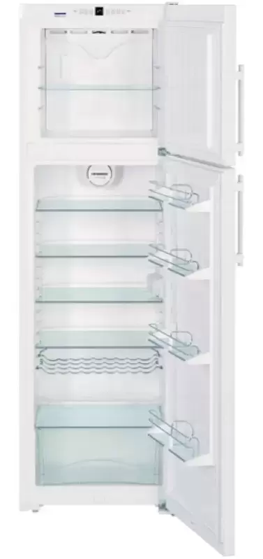 Холодильник Liebherr CTN 3663 Premium NoFrost — отдельно стоящая модель белого цвета высотой 191 см с эффектным глянцевым фасадом. Общий полезный объем его составляет 306 литров. В верхней части корпуса за дверцей находится панель управления с дисплеем MagicEye со светодиодной индикацией температуры и кнопками SoftTouch. С системой размораживания NoFrost исключается намерзание льда на стенки и не требуется длительное оттаивание. О появлении неисправностей и о неплотно закрытой двери оповещает оптическая и акустическая сигнализация. Внутреннее наполнение составляют полки GlassLine, изготовленные из ударопрочного стекла: их можно регулировать по высоте. Два раздельных контура охлаждения — для морозильной и холодильной камер — позволяют независимо настраивать температуру, при этом не происходит воздухообмена, что способствует сохранению естественной влажности продуктов. Система PowerCooling обеспечивает быстрое охлаждение свежих продуктов и поддерживает одинаковую температуру внутри холодильной камеры.