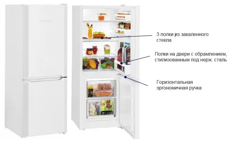 Оснащён системой FrostSafe, которой представляет собой 2 выдвижных контейнера в морозильном отделении. Благодаря закрытой конструкции и высокому исполнению при открывании двери тепло не проникает внутрь ящиков. 2 переставляемых по высоте полки обеспечивают комфорт эксплуатации. Имеются удобные ящики для хранения овощей и фруктов, а также специальное отделение для размещения бутылок. Благодаря светодиодной подсветке все запасы находятся на виду. Конструкция модели позволяет установить ее вплотную к стене и тем самым сэкономить пространство. Система управления механическая, настройка осуществляется поворотным регулятором.