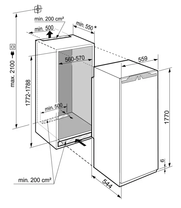 Модель с одной дверцей объемом 324 литра в стальном корпусе оснащена мебельной системой вентиляции и жестким креплением мебельного фасада по системе door on door. Дверца открывается на широкий угол 115°, по желанию ее можно перенавесить справа налево. Закрытая электронная панель управления оснащена ЖК-дисплеем MagicEye с цифровой индикацией температуры и кнопками для выбора дополнительных функций. Предусмотрена блокировка панели управления от детей. Небольшая морозильная камера объемом 28 литров расположена сверху. Холодильная камера размораживается автоматически и легко чистится. Для хранения продуктов в ней предусмотрены регулируемые по высоте полки из закаленного стекла Comfort GlassLine, в том числе складная полка, и два больших ящика для овощей и фруктов. Циркуляционное охлаждение PowerCooling равномерно распределяет охлажденный воздух по всей холодильной камере. Режим суперохлаждения SuperСool позволит подготовить камеру к загрузке большого количества свежих продуктов. Светодиодное освещение гарантирует хороший обзор содержимого камеры. Возможно автономное сохранение холода в течение 17 часов после отключения электропитания.