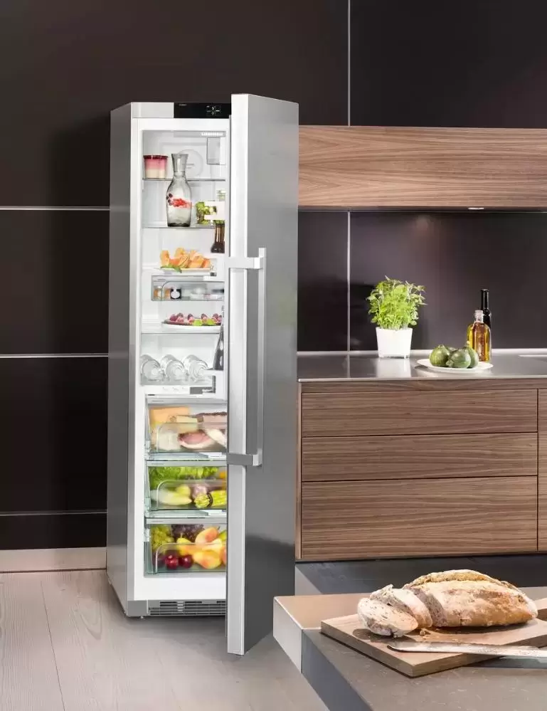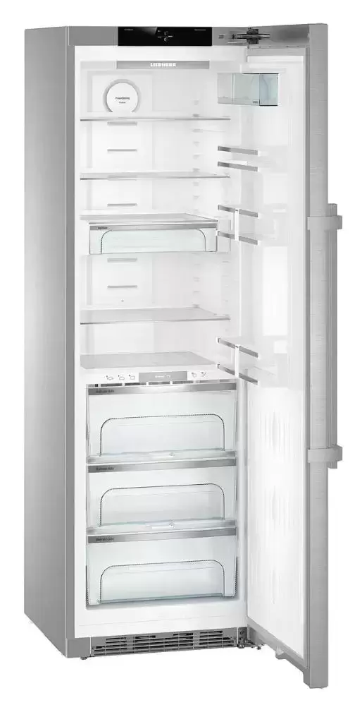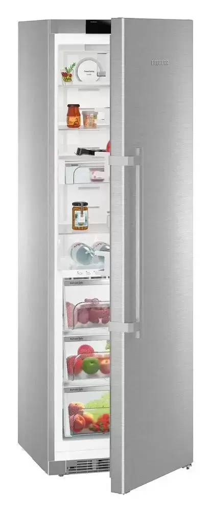 Liebherr KBies 4370 — однокамерный холодильник объемом 367 л. Оснащен зоной свежести BioFresh, где поддерживается температура чуть выше 0°C и идеальная влажность. Доводчик SoftSystem амортизирует движение двери, обеспечивая мягкое закрывание. Поверхность имеет покрытие SmartSteel, где не остается царапин и отпечатков пальцев.