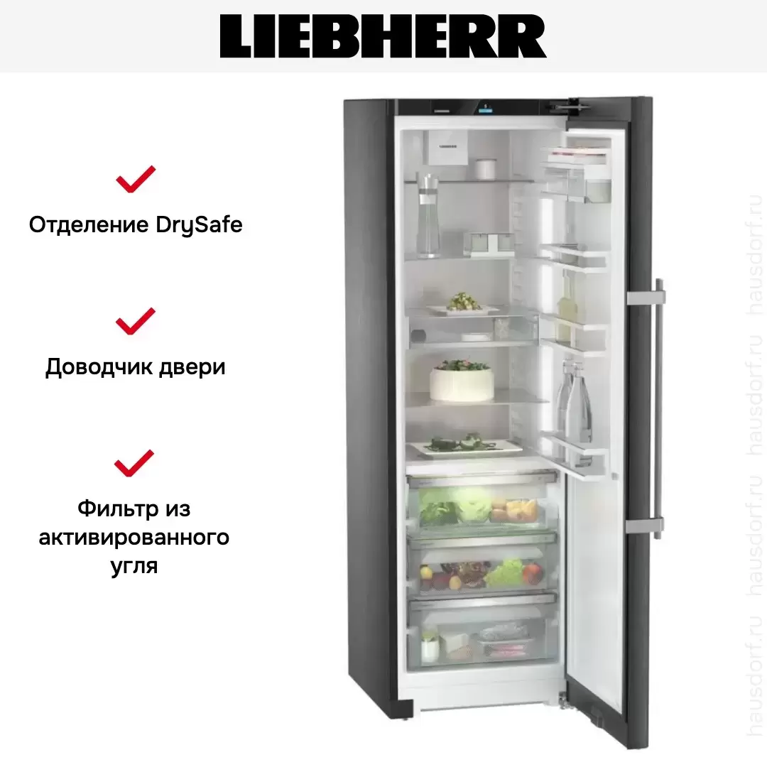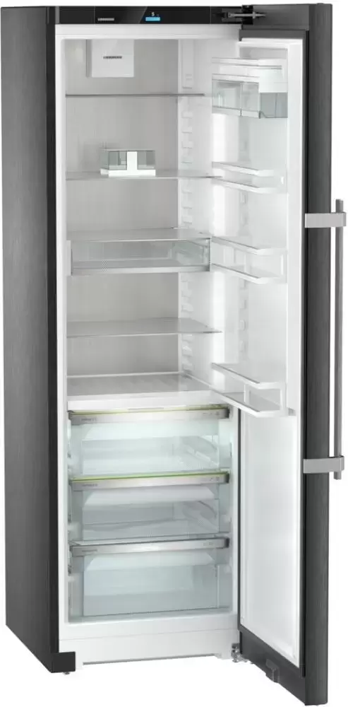 Liebherr RBbsc 5250 — отдельно стоящая модель без морозильника высотой 185 см и объемом 407 литров. Стальной корпус окрашен в цвет «черная сталь». Особенность холодильника — большая зона свежести из нескольких ящиков с различным уровнем влажности: для овощей и фруктов и для мыса и рыбы. Технология HomeDialog позволяет добавить устройство в домашнюю сеть.