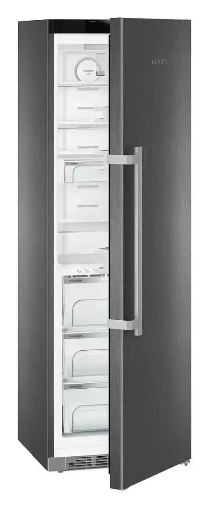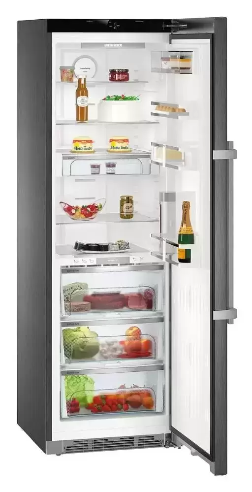 Отдельностоящий холодильник Liebherr SKBbs 4370 обладает лаконичным классическим дизайном, боковые стенки выполнены из легированной стали со SmartSteel, алюминиевая ручка со встроенным механизмом открывания прекрасно дополняет фронтальную часть цвета «Black Steel». Светодиодное освещение расположено на задней стенке и встроено в тыльную сторону изоляционной пластины — это экономично, не требует обслуживания и приятно для зрения.