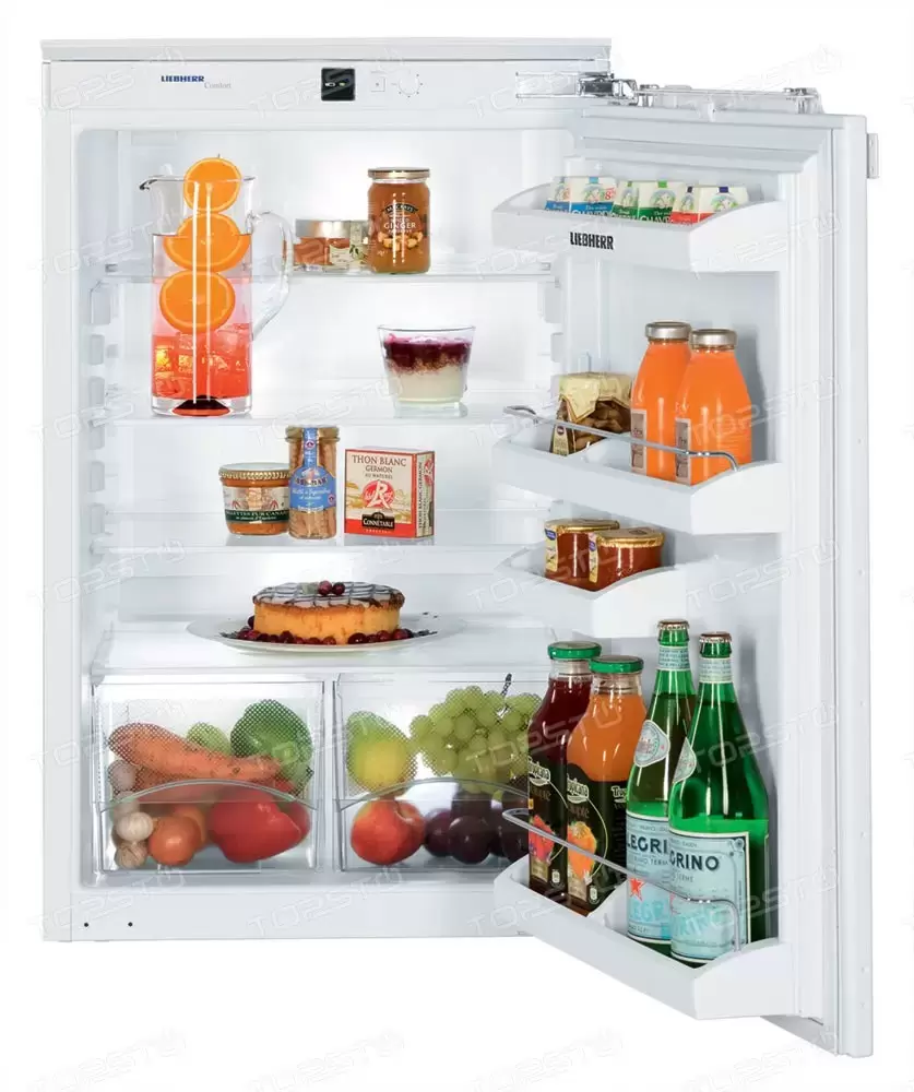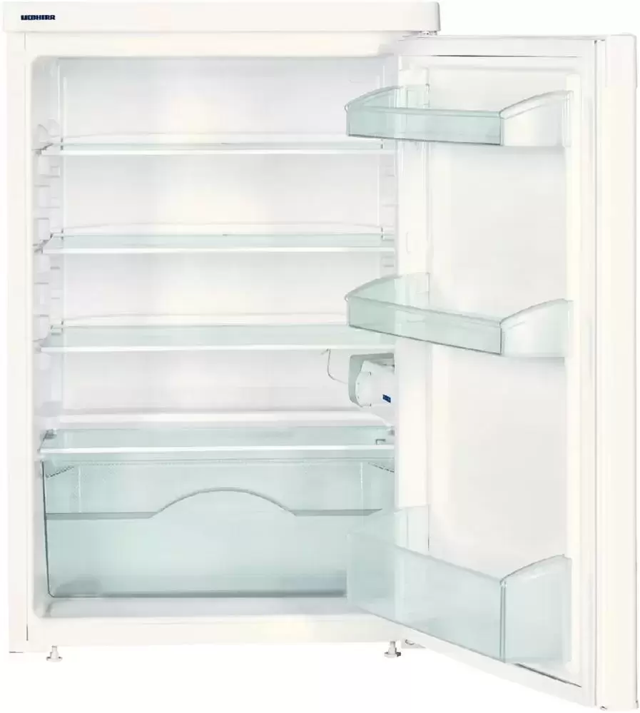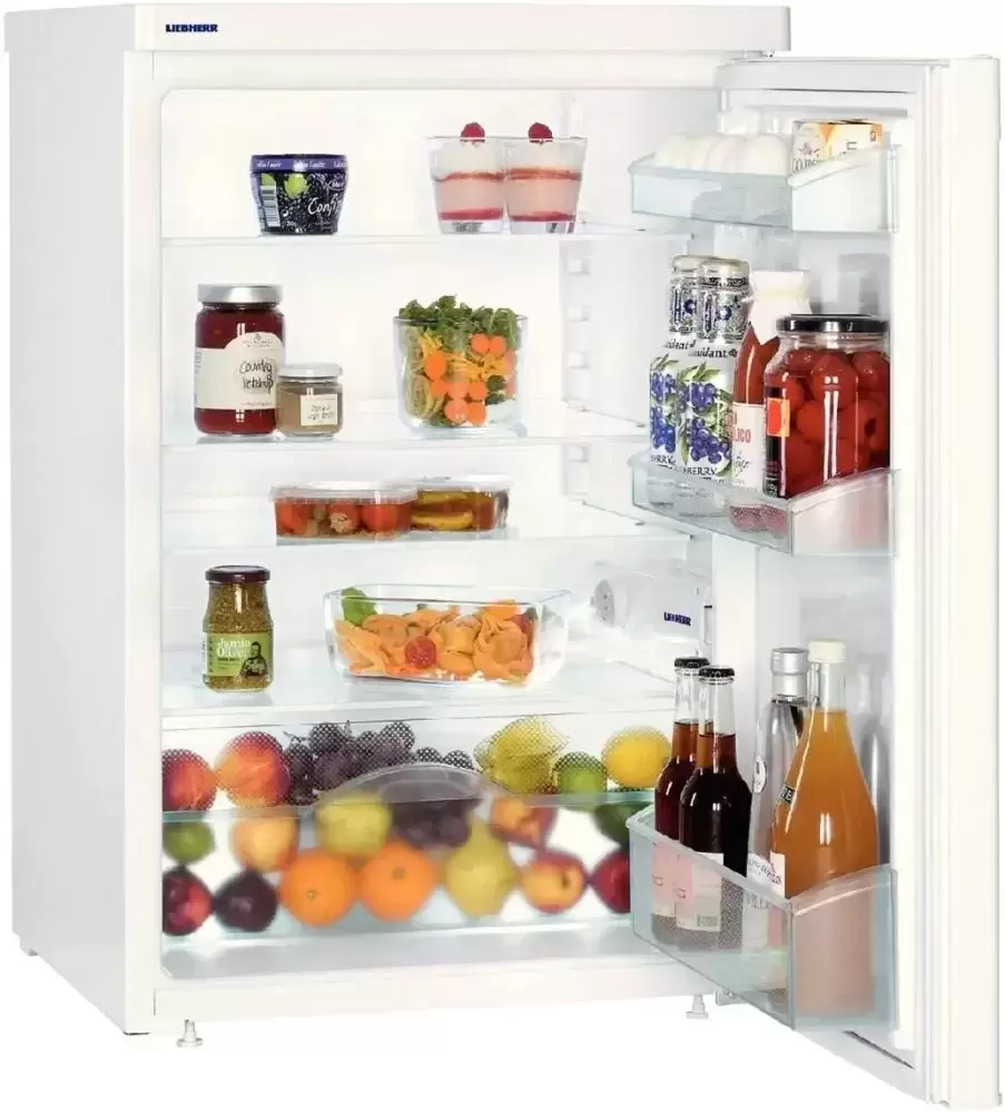 Отдельно стоящий холодильник без морозильной камеры Liebherr T 1700 — компактный прибор высотой 85 см для размещения под столешницей. Прибор может использоваться в небольшой кухне, на даче, в отеле или офисе. Для выравнивания на месте установки предусмотрены регулируемые ножки. Общий объем камеры составляет 154 литра. Модель из серии SwingDesign отличают скошенные углы, стальной корпус, фронтальная часть глянцевого белого цвета и стильная интегрированная ручка. Устройство очень удобно в эксплуатации: для регулировки температуры предусмотрена электромеханическая система управления с поворотным переключателем. Благодаря автоматическому размораживанию на стенках не образуется наледь, так что уход за устройством максимально прост. Полки из закаленного стекла регулируются по высоте, овощи и фрукты можно хранить в большом прозрачном пластиковом контейнере. На дверце имеется отделение для консервов и для бутылок, а также подставка для яиц. Срок официальной гарантии производителя на это устройство составляет 24 месяца.