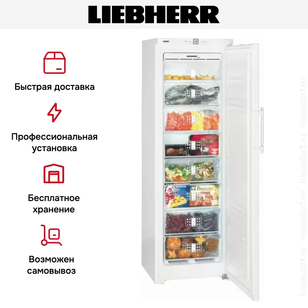 Отдельно стоящая морозильная камера Liebherr GNP 3056 Premium NoFrost — полноразмерное устройство высотой 184 см и шириной 60 см, которое можно устанавливать вплотную к стене. Ее объем составляет 304 литра — этого достаточно для хранения большого запаса продуктов. Стальной корпус глянцевого белого цвета и ручка с встроенным толкателем придают ему стильный современный вид. Климатический класс SN гарантирует стабильную работу при наружных температурах от + 10 до +43°С.
