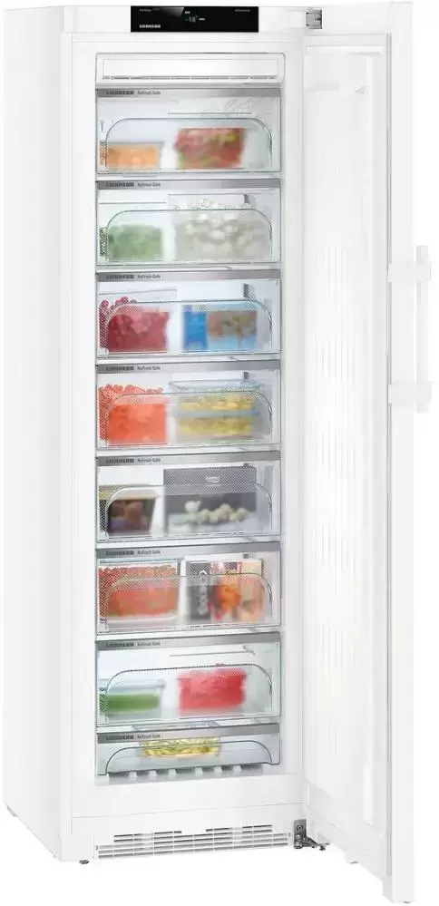Морозильник Liebherr GNP 4355 Premium NoFrost — отдельно стоящая модель высотой 185 см и объемом 315 литров. Прибор в стальном корпусе белого цвета можно установить вплотную к стене. Для регулировки параметров работы служит система управления MagicEye класса Premium с 2,4-дюймовым сенсорным цветным TFT-дисплеем. Система размораживания No Frost препятствует появлению наледи на стенках камеры. Система SmartDevice позволяет управлять работой устройства удаленно.