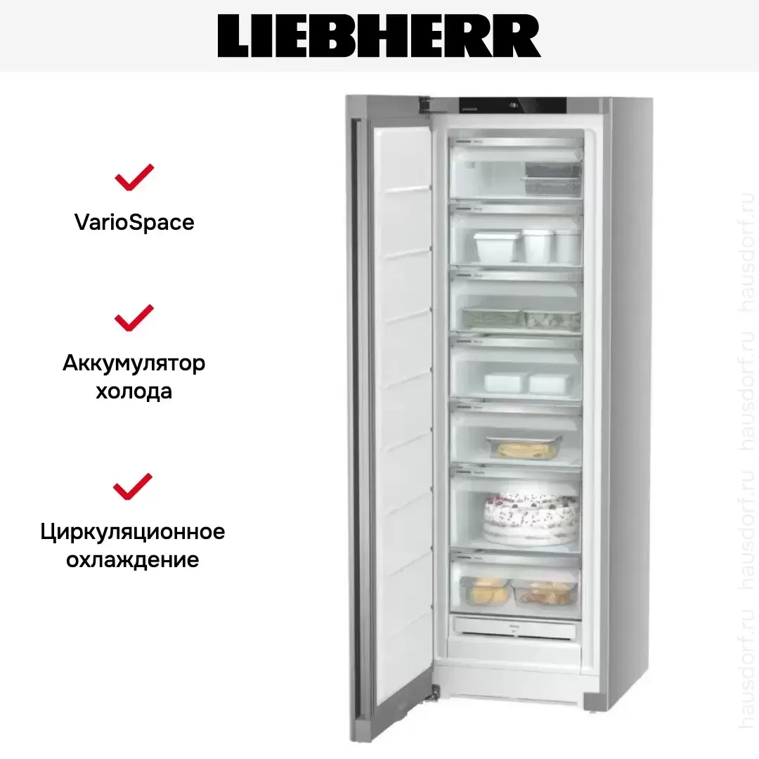 Морозильник Liebherr представляет собой прекрасное сочетание функциональности и стильного дизайна. Внешний вид устройства оформлен в современном стиле Plus с использованием серебристого цвета, что придаёт ему элегантность и современность. Корпус выполнен из качественной стали, что гарантирует надёжность и долговечность, имеет обработку против отпечатков пальцев, что облегчает уход за ним и позволяет сохранить его внешний вид в идеальном состоянии.