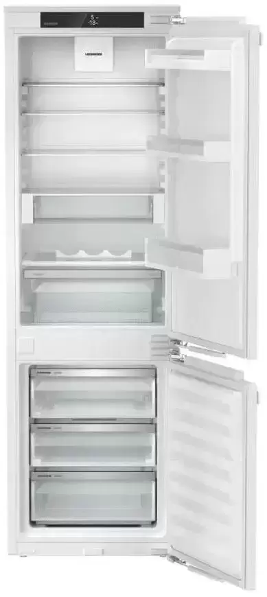 Встраиваемый холодильник Liebherr ICNd 5123 Plus высотой 177 см и полезным объемом 251 л. Внутри камера оснащена шестью полками, пять из которых регулируются по высоте, а одна разделяется. Контейнер EasyFresh обеспечивает более длительное хранение неупакованных овощей, фруктов и плодов, за счет плотно закрытой крышки и повышенной влажности.