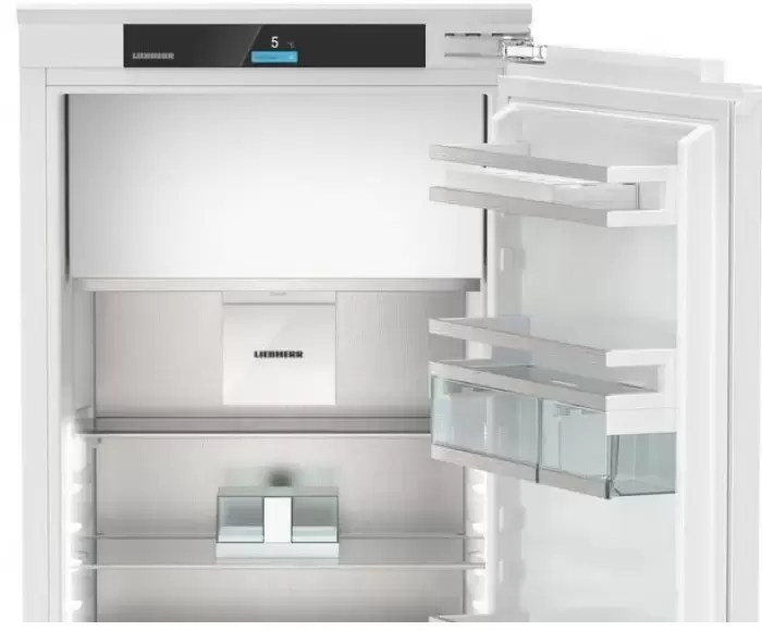 Встраиваемый холодильник Liebherr IRBd 4151 Prime удобен и вместителен. Морозильная камера расположена сверху. Контейнеры BioFResh находятся внизу камеры, температура в них близка к 0 градусам, а влажность повышена, благодаря чему овощи и фрукты дольше остаются свежими. Вы можете не упаковывать продукты, хранящиеся подобным образом, контейнер закрывается плотно.