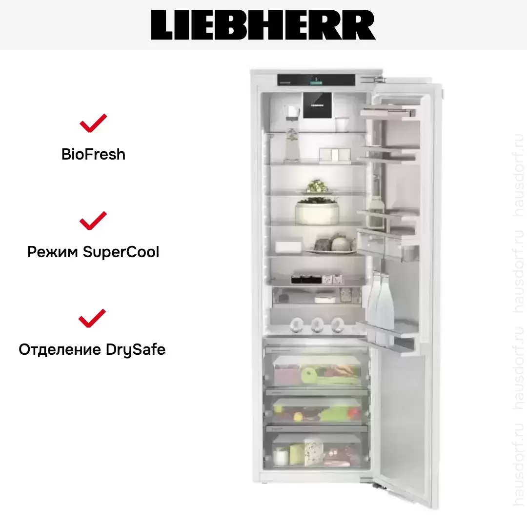 Встраиваемый холодильник Liebherr IRBd 5180 Peak станет отличным помощником на вашей кухне. Данная модель оснащена режимами, которые значительно помогут сэкономить ваше время. Сенсорный и свайповый экран интуитивно понятен в управлении, режимы и температура выбираются одним касанием.