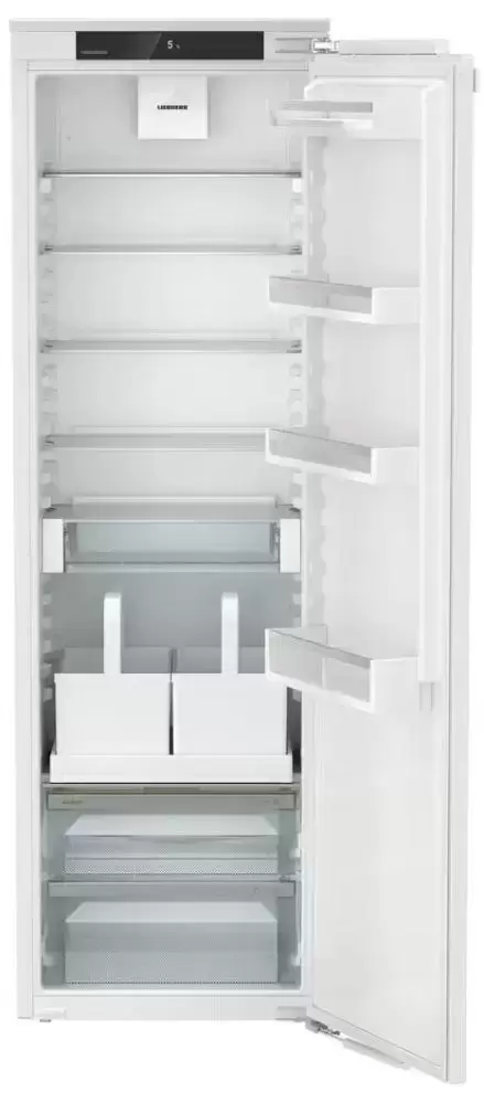 Встраиваемый холодильник Liebherr IRDe 5120 Plus с сенсорным управлением и цифровой индикацией температуры общим объемом 320 л вместит любые продукты, а регулируемые полки по высоте позволят ставить посуду большого объема и даже поместить противень.