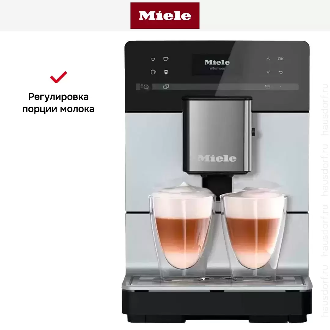 В модели Miele CM 5510 ALSM используются сразу два типа кофе — молотый и зерновой: это расширяет ваши возможности и увеличивает разнообразие напитков, которые можно приготовить с отличиями в крепости, ароматности и терпкости. Автоматическая кофемашина — по сути облегченная и уменьшенная версия приборов из кафе, она обладает широкими возможностями, разнообразным меню и продуманной системой контроля за процессом. Это отличный выбор как для дома, так и для офиса.