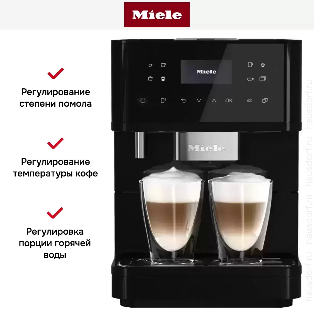 Кофемашина Miele CM 6160 OBSW выполнена в цвете черного обсидиана. Модель в таком оформлении станет смелым решением для вашего интерьера и отлично подчеркнет современный дизайн. Вы сможете поставить прибор в любое подходящее место или встроить его в кухонный гарнитур. Одновременное приготовление сразу нескольких напитков в две чашки ускоряет процесс работы. Вы можете выбирать одну или двойную порцию латте, капучино, ристретто или другого напитка.