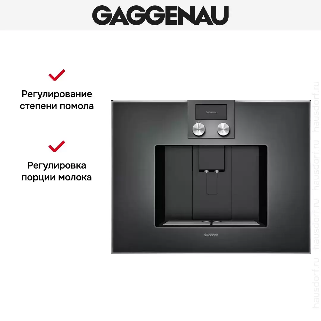 Кофемашина Gaggenau CM 450-102 имеет возможность встраивания, поэтому модель не занимает дополнительного пространства в помещении. Есть возможность дистанционного управления прибором через мобильное приложение Home Connect. Для этого вам необходимо подключиться к сети Wi-Fi или приобрести LAN-кабель. Система безопасности «защита от детей» блокирует всю панель управления, что позволяет избежать сбоя настроек и заданных параметров. При включении или выключении кофемашины срабатывает автоматическая система промывки. Помол и заваривание кофе при выборе двух порций одного типа напитка происходит отдельно для каждой из порций. Среди других дополнительных преимуществ: