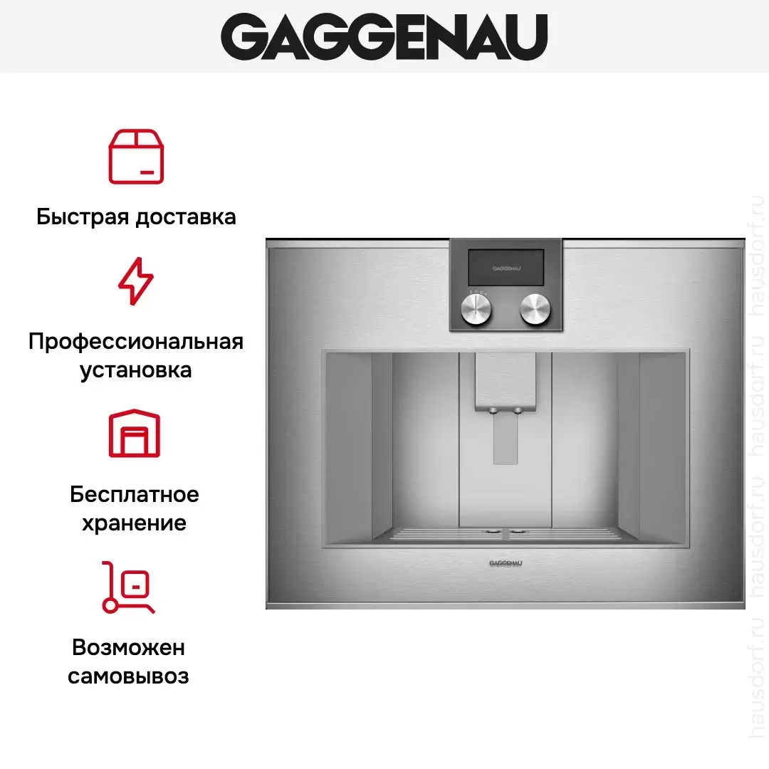 Gaggenau CM 450-111 — встраиваемая кофемашина шириной 60 см. Модель поддерживает 11 разноспециальных программ, при помощи которых можно приготовить латте, капучино, американо, флэт уайт и эспрессо. Мультиязычный сенсорный дисплей позволяет проконтролировать рабочие параметры.
