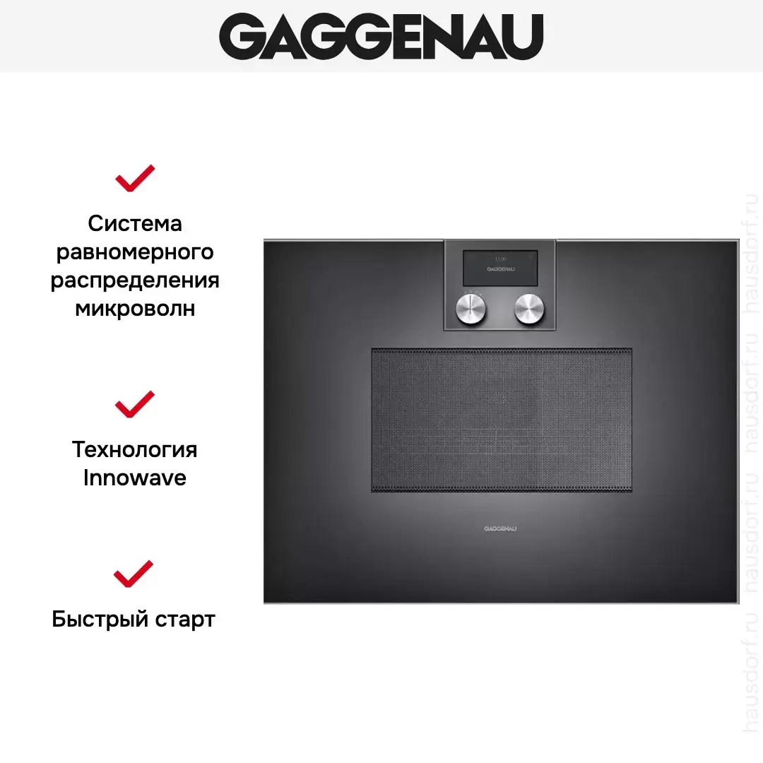 Встраиваемая микроволновая печь Gaggenau BM 451-100 — прекрасное дополнение к уже имеющейся кухонной технике. Ее можно установить в колонну с духовым шкафом, пароваркой, кофемашиной. Цвет этой модели: антрацит.