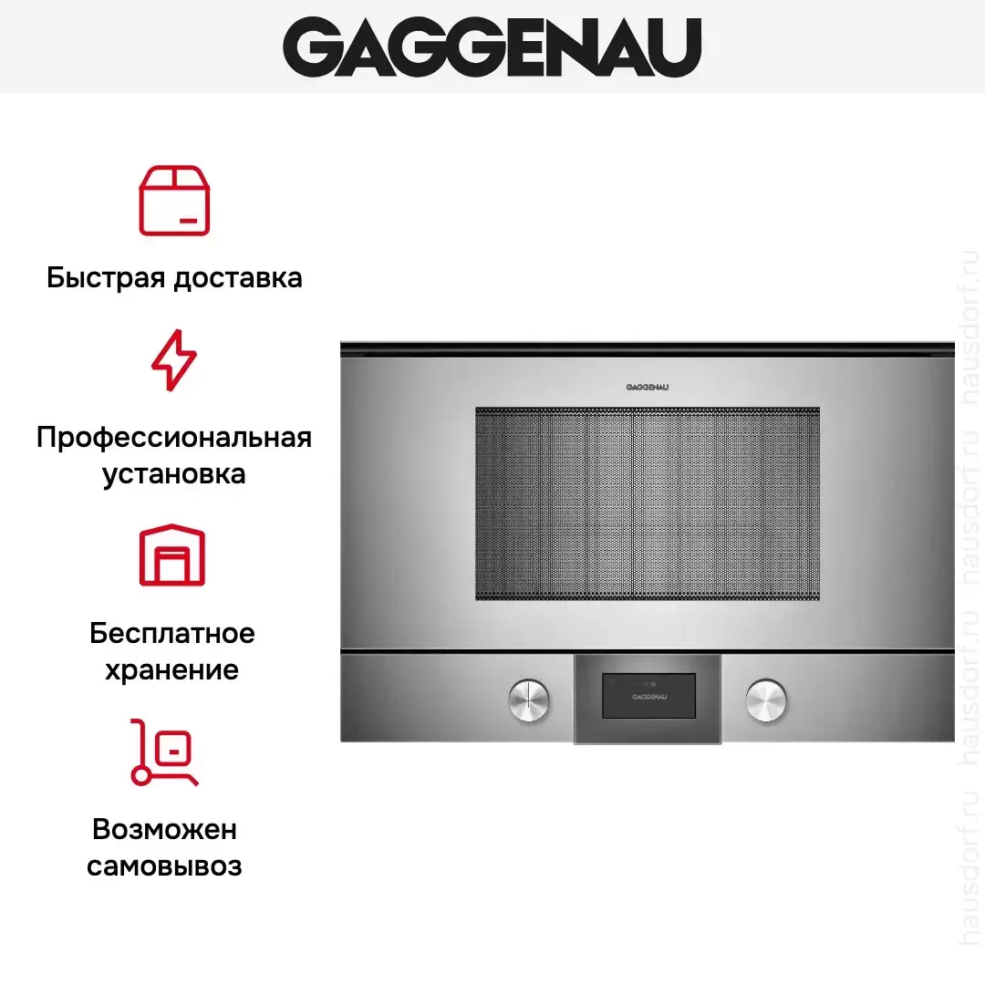 Встраиваемая микроволновая печь Gaggenau BMP 224-110 — прекрасное дополнение к уже имеющейся кухонной технике. Ее можно установить в колонну с духовым шкафом, пароваркой, кофемашиной. Цвет этой модели: нержавеющая сталь.