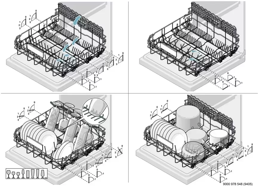 Модель DF480162 бережно отмывает стекло и хрупкую посуду. Внутри два короба, в которые можно загрузить стандартные комплекты (максимальное количество — 12), высокие стаканы, столовые приборы. Корзины регулируются складными направляющими.