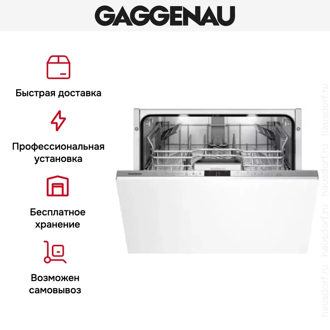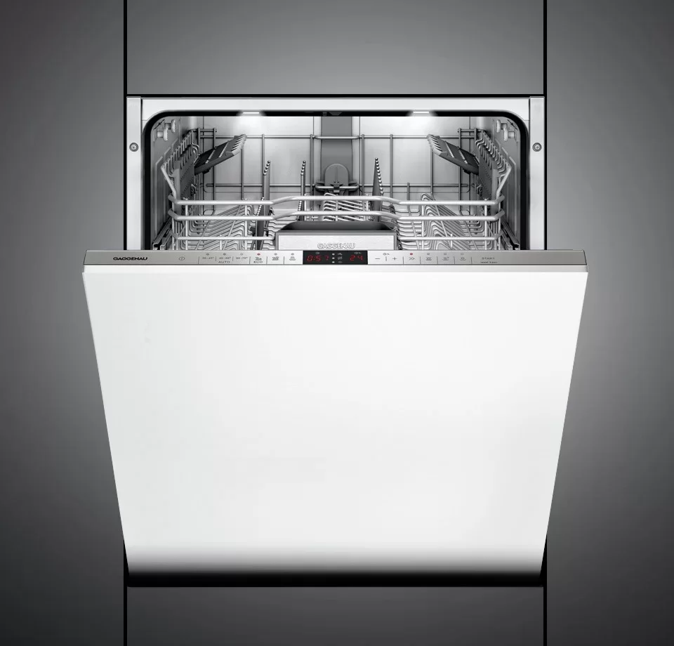 Встраиваемая модель Гаггенау отлично впишется в любой интерьер, главное — правильно выбрать место, чтобы подвести коммуникации. Устанавливается в нишу целиком, полностью закрывается декоративной панелью. Обратите внимание: в комплекте не идет фасад, его необходимо установить самостоятельно. Имеет стандартные размеры, поэтому может не поместиться на очень маленькой кухне. В камеру можно загрузить ограниченное число комплектов: 13 шт. Комплектом считается набор посуды на одного человека, который нужен для полноценного приема пищи: глубокая и плоская тарелки, тарелка для салата, блюдце под чашку, сама чашка, ложка и вилка.