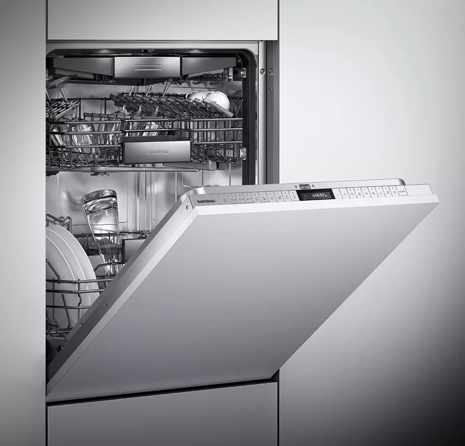 Встраиваемая модель Гаггенау отлично впишется в любой интерьер, главное — правильно выбрать место, чтобы подвести коммуникации. Обратите внимание: в комплекте не идет фасад, его необходимо установить самостоятельно. Устанавливается в нишу неполностью, остается открытой панель управления. Имеет стандартные размеры, поэтому может не поместиться на очень маленькой кухне. В камеру можно загрузить ограниченное число комплектов: 13 шт. Комплектом считается набор посуды на одного человека, который нужен для полноценного приема пищи: глубокая и плоская тарелки, тарелка для салата, блюдце под чашку, сама чашка, ложка и вилка.