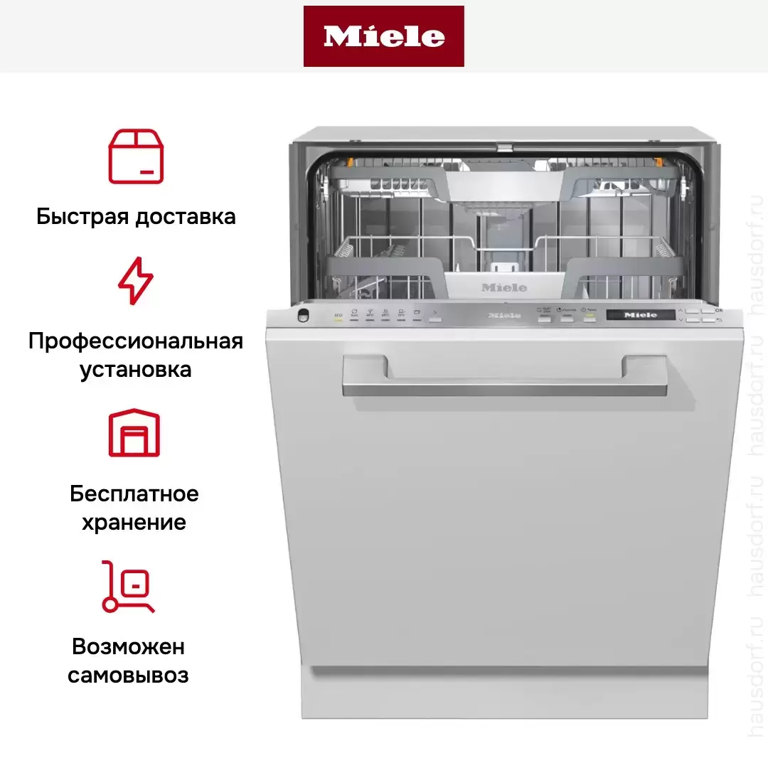 Встраиваемая модель Миле отлично впишется в любой интерьер, главное — правильно выбрать место, чтобы подвести коммуникации. Устанавливается в нишу целиком, полностью закрывается декоративной панелью. Обратите внимание: в комплекте не идет фасад, его необходимо установить самостоятельно. Имеет стандартные размеры, поэтому может не поместиться на очень маленькой кухне. В камеру можно загрузить ограниченное число комплектов: 14 шт. Комплектом считается набор посуды на одного человека, который нужен для полноценного приема пищи: глубокая и плоская тарелки, тарелка для салата, блюдце под чашку, сама чашка, ложка и вилка.