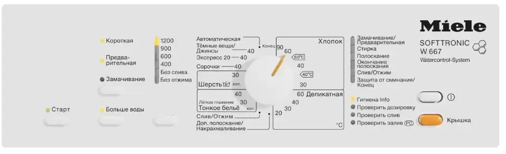 Простая в обращении и надежная стиральная машина MIELE W 667 с загрузкой до 6 кг бережно постирает ваши вещи. Модель высотой 90 см и шириной 45 см с вертикальной загрузкой оснащена удобной наклонной панелью управления без дисплея. Поворотный программатор и дополнительные кнопки облегчают задание режима работы. 11 программ рассчитаны на стирку хлопка, шерсти, рубашек, дополнительное полоскание, освежение. О высоком качестве работы свидетельствует класс стирки и отжима А и класс энергопотребления A+++. Для экономии электроэнергии и воды предусмотрено автоматическое определение количества белья. Барабан с автоматическим позиционированием и фиксацией не нужно прокручивать вручную.