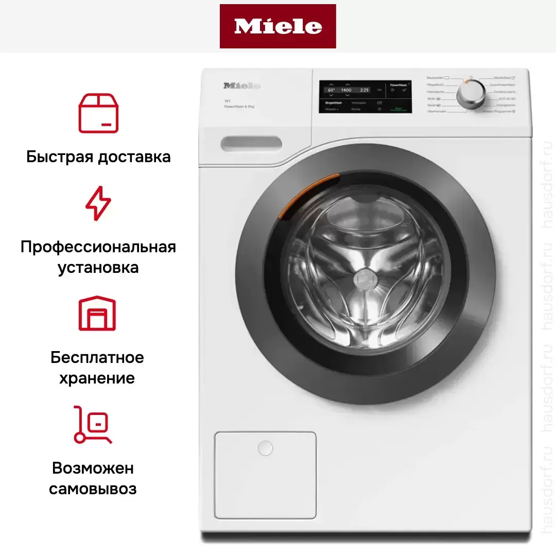 Цвет этой стиральной машинки — белый лотос. Ее можно установить в колонну с сушильной машиной, чтобы оптимизировать рабочее пространство и сделать удобный «прачечный» уголок. Обычно для этого необходимы специальные соединительные элементы — ищите их в разделе «Аксессуары». В данной модели Miele используется барабан сотовый. Мотор: ProfiEco. Благодаря ему машина работает тише, потребляет меньше электроэнергии, сохраняя при этом необходимую мощность.