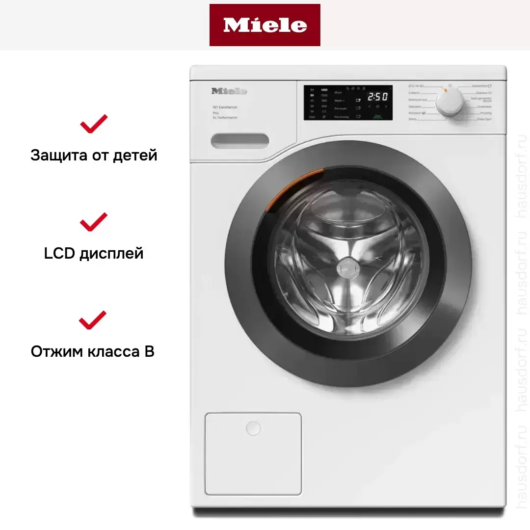 Стиральная машина Миле WED164WCS выпущена в стандартной конфигурации — устанавливается отдельно, поэтому рекомендуем заранее выделить для нее место в квартире. Благодаря классической фронтальной загрузке она привычна и удобна даже для тех, кто не очень разбирается в технике. Вместительность барабана средняя, поэтому ее хватит и для одиночек, и для семей с детьми. Максимальная загрузка: 9 кг.