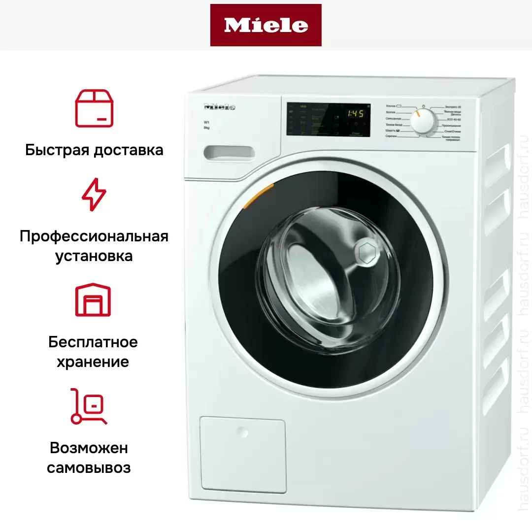 Стильная стиральная машина Miele WWD120 WCS белого цвета с черным люком станет интересным акцентом в дизайне вашей ванной комнаты. Отдельностоящий тип установки гарантирует беспроблемное перемещение устройства на новое место. Благодаря регулируемым ножкам можно легко компенсировать неровности пола. Управлять моделью очень удобно: есть сенсорный желтый дисплей для выбора дополнительных опций, поворотный программатор для установки базовых программ. Есть специальная функция AddLoad для того, чтобы добавить белье в барабан уже в процессе стирки. Мотор ProfiEco увеличивает эффективность и уменьшает потребление энергии, что делает модель еще привлекательнее.