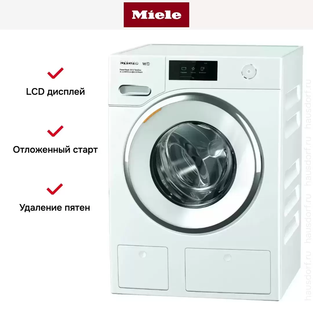 Полноразмерная отдельно стоящая модель с загрузочным весом 9 кг относится к самому высокому классу энергопотребления A+++ благодаря режиму автоматической корректировки расхода ресурсов и современному двигателю ProfiEco. Опция EcoFeedback отображает данные о потреблении воды и электроэнергии на дисплее. Для стирки можно использовать фирменные жидкие моющие средства Miele UltraPhase 1 и UltraPhase 2, которые расходуются очень экономно с системой TwinDos. Опция разглаживания паром SteamCare позволяет освежить одежду и предохранить ее от складок. Режим QuickPower позволяет выстирать небольшую загрузку за 49 минут, имеется и быстрая программа стирки за 20 минут «Экспресс 20». Машина может распознавать до 23 видов пятен и использовать для их удаления несколько способов. Одну вещь позволит выстирать функция SingleWash. Тихая программа предназначается для использования в ночное время. Большой белый люк с хромированной окантовкой поможет загрузить большие вещи — пуховики, гардины или подушки. Барабан с сотовой структурой не повреждает белье, предохраняя его от изнашивания.