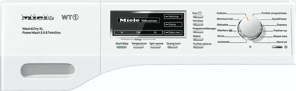 Стирально-сушильная машина Miele с загрузкой белья до 8кг. Модель выполнена в элегантном дизайне — интуитивная наклонная панель управления, хромированная окантовка дверцы, эргономичный поворотный переключатель. Информативный дисплей отобразит текущие настройки.