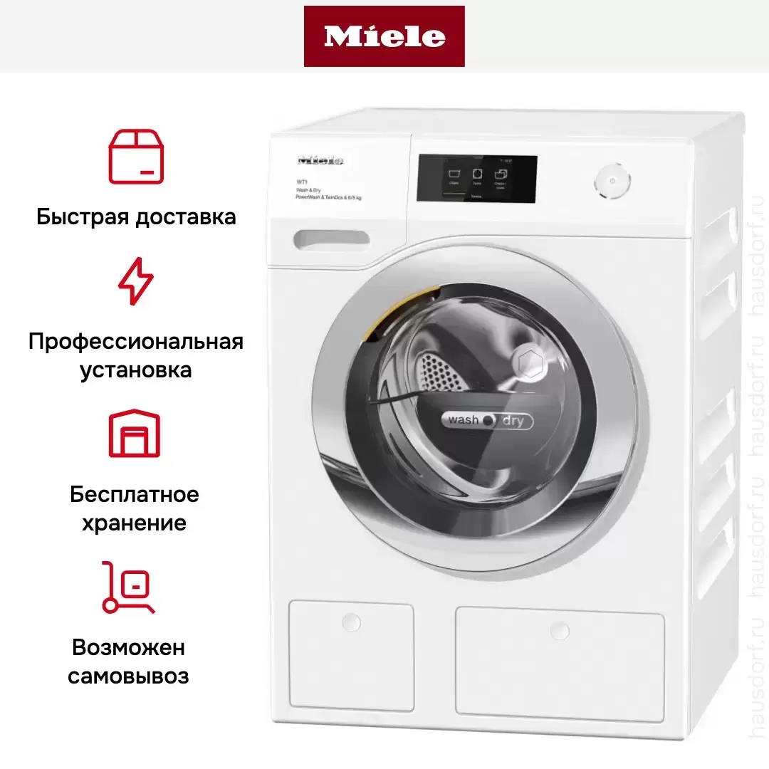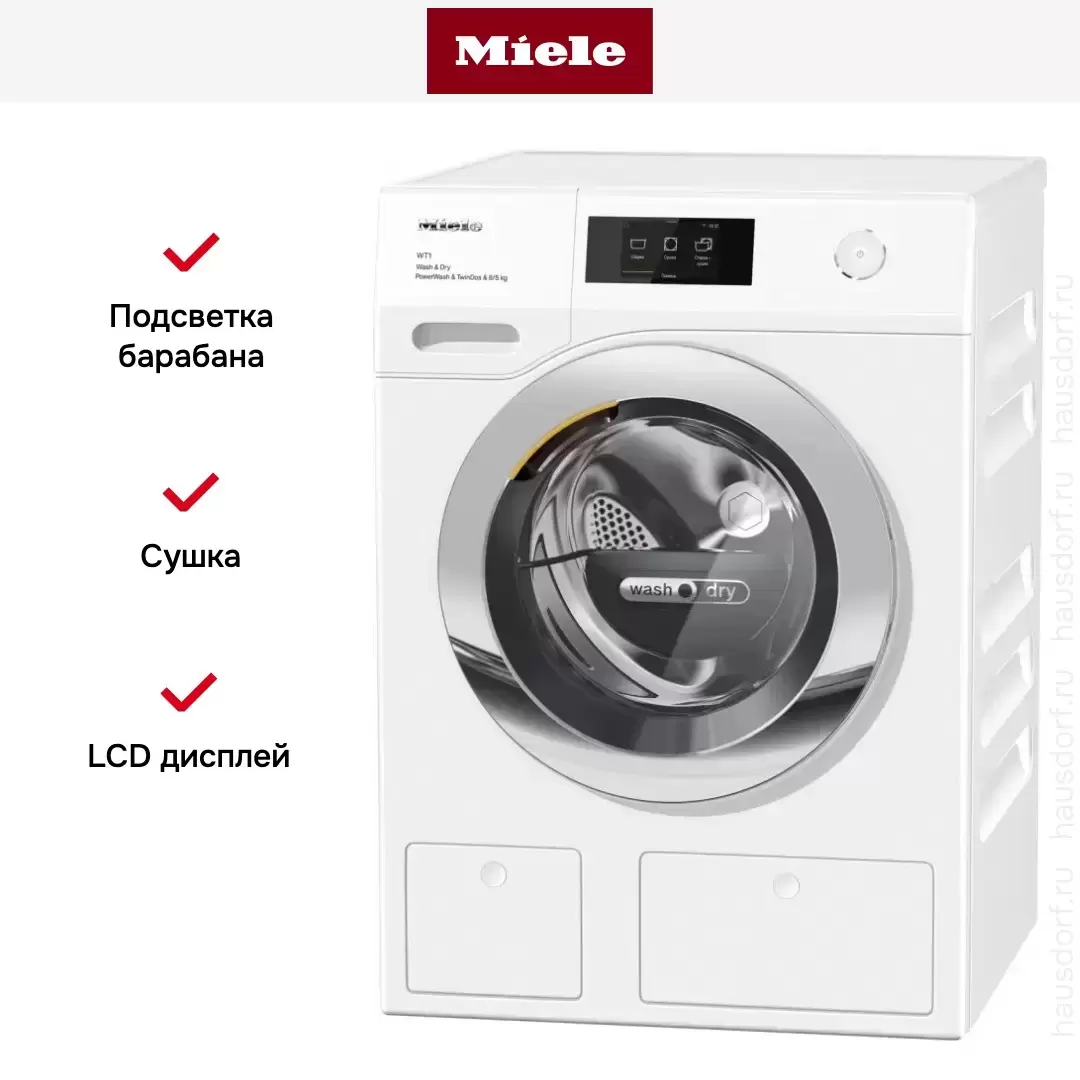 Стиральная машина с большим количеством автоматических и настраиваемых программ — достойный выбор для вашей ванной комнаты. Загрузка барабана составляет 8 кг, этого хватит на стандартную семью, которая запускает прибор несколько раз в неделю. Для сушки можно добавить внутрь только 5 кг, так как вещам нужно больше воздуха для тщательной обработки. Сенсорное управление с понятным дисплеем — находка для тех, кто не хочет долго разбираться в соотношении значков и функций. Для удобства также есть индикация моющего средства в дозаторе и времени, оставшегося до окончания цикла. Вы можете отложить старт стирки не несколько часов — максимум на сутки, если хотите вписать бытовые дела в напряженный график. Одна из дополнительных полезных опций — возможность дозагрузки белья. Модель представлена в классическом белом цвете, который хорошо гармонирует с современными интерьерами ванных комнат. Тихая работа не создает дискомфорт. Прибор можно установить в колонну, что расширяет возможности для размещения. Среди преимуществ стирально-сушильной машины Миле WTR870WPM: особенно тихая программа, теплый обдув, защита от протечек WaterproofMetal.