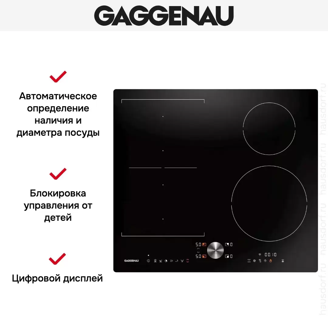 Варочная панель 4 индукционными конфорками с объединением в прямоугольную зону Flex. Вы можете увеличить мощность нагрева с помощью функции Booster на короткое время. Управление происходит с помощью сенсорной панели и магнитного переключателя TwistPad.