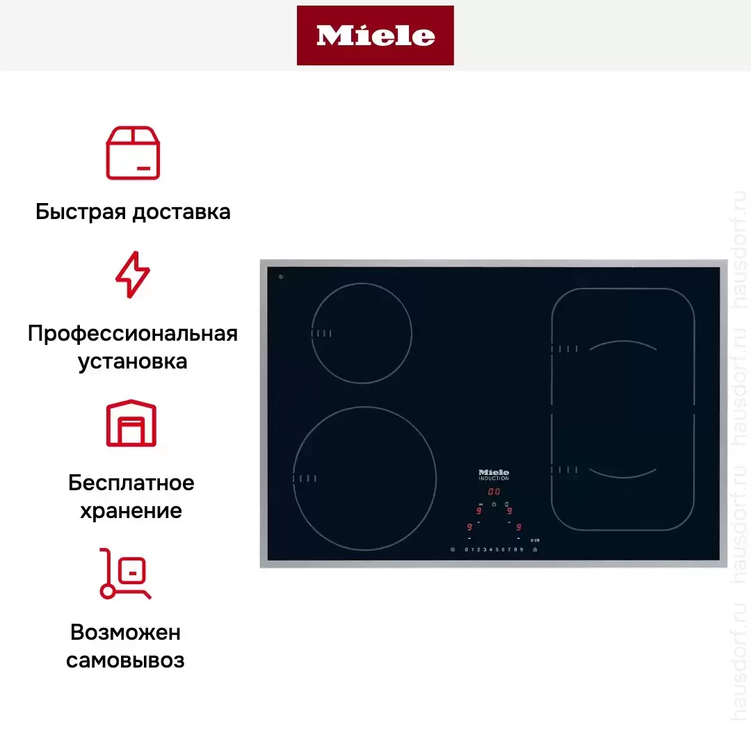 Miele KM 6347 — независимая варочная панель с четырьмя индукционными конфорками, две из которых объединяются в единую зону PowerFlex. Стеклокерамическая поверхность модели остается относительно прохладной даже в процессе готовки, благодаря чему пролитая жидкость и остатки пищи не пригорают. Для безопасной эксплуатации предусмотрены системы контроля неполадок и защитной блокировки.