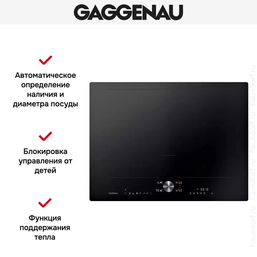 В вашем распоряжении разные степени нагрева — каждая из них может понадобиться в зависимости от рецепта, а также от цели: приготовления, разогрева уже готовых блюд и т.д. Регулировка 17-ступенчатая. Благодаря специальной опции Power можно не устанавливать максимальную температуру, так как потом придется вовремя ее менять вручную. В этом режиме мощность сама подскакивает до предельных значений, но на короткое время, а затем также автоматически возвращается к прежним настройкам. Варочная панель распознает, что на нее поставили посуду, и не путает ее с другими вещами — например, салфеткой для уборки, не реагирует на прикосновения руки к конфорке. Благодаря этому вы можете быть уверены, что посторонние предметы не будут повреждены нагревом. Функция поддержания тепла дает возможность сохранить свежесть приготовленных блюд, даже если до ужина еще далеко.