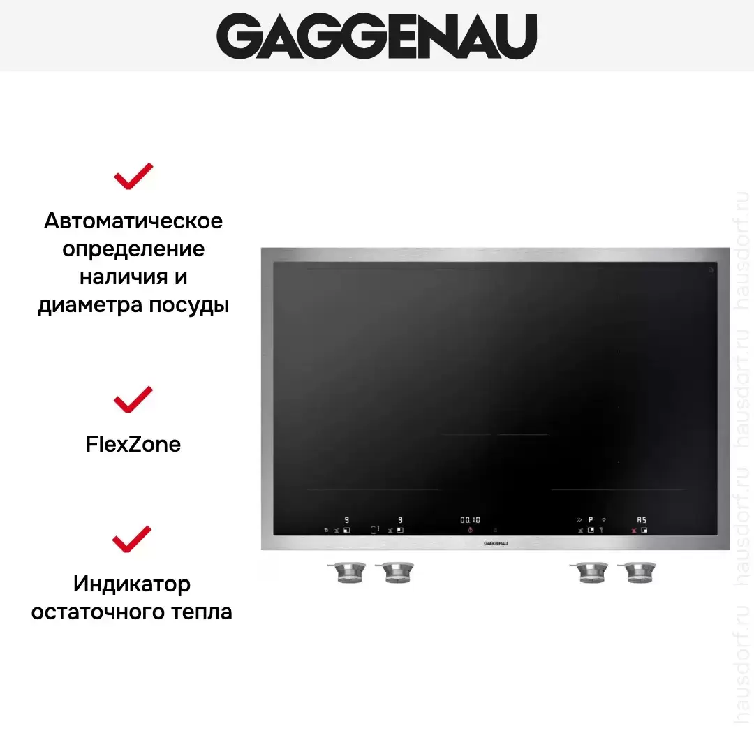 Особенности панели конфорок, на которые стоит обратить внимание: Induction, FlexZone. Некоторые конфорки можно использовать не только по отдельности, но и как общее пространство, внутри которого расставлять посуду, как вам удобно.