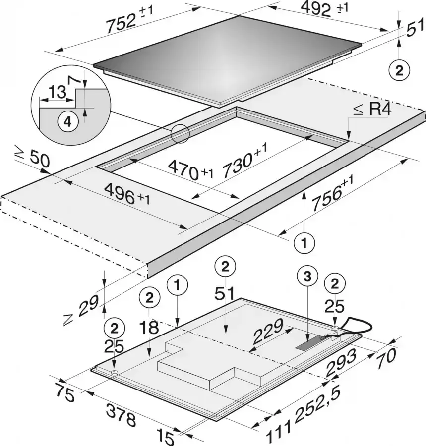 Ширина этой модели — 75 см, материалом изготовления послужила высококачественная черная легко очищаемая стеклокерамика. Все конфорки оснащены автоматикой закипания, автоматически снижающей мощность нагрева, когда воды закипела. Функция TempControl со звуковым сигналом поддерживает 3 уровня нагрева для предотвращения пригорания блюд при жарке. Функция Stop&Go позволяет приостановить приготовление пищи, а затем продолжить его с восстановленными настройками. Функция распознавания наличия и размера посуды нагревает только отмеченную область, исключая потери тепла.